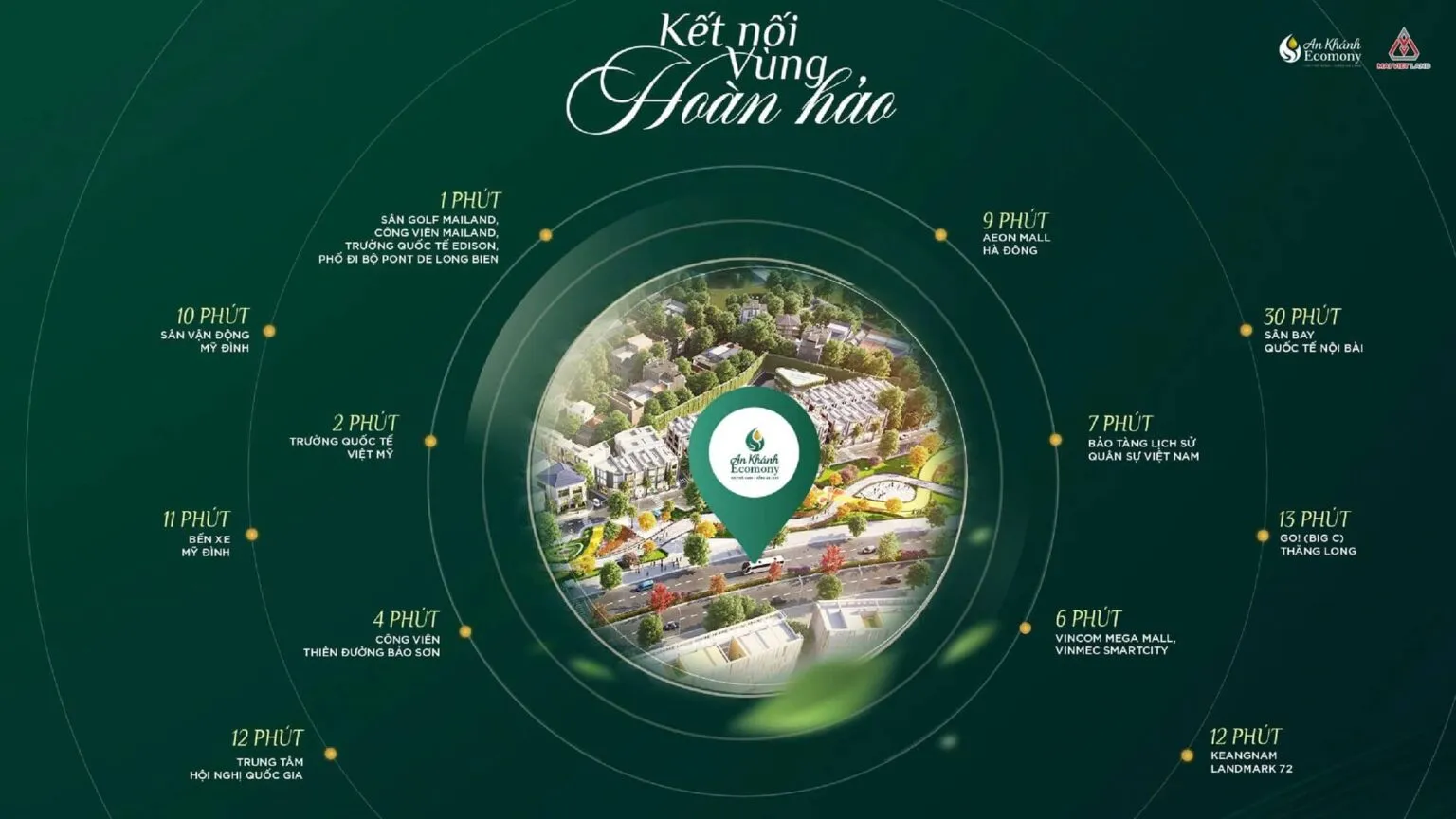 Chỉ vài phút di chuyển, cư dân An Khánh Ecomony tiếp cận trung tâm thương mại, trường quốc tế và bệnh viện chất lượng cao tại Mailand Hanoi City. Ba giá trị cốt lõi – sống xanh, sống tiện nghi, sống kết nối – được hội tụ hoàn hảo, biến dự án thành lựa chọn lý tưởng cho gia đình hiện đại.